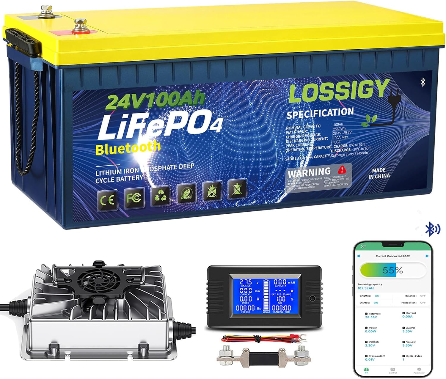 - Best Mid-Range 24V Setup: LOSSIGY 24V 100AH Trolling Motor Lithium Battery