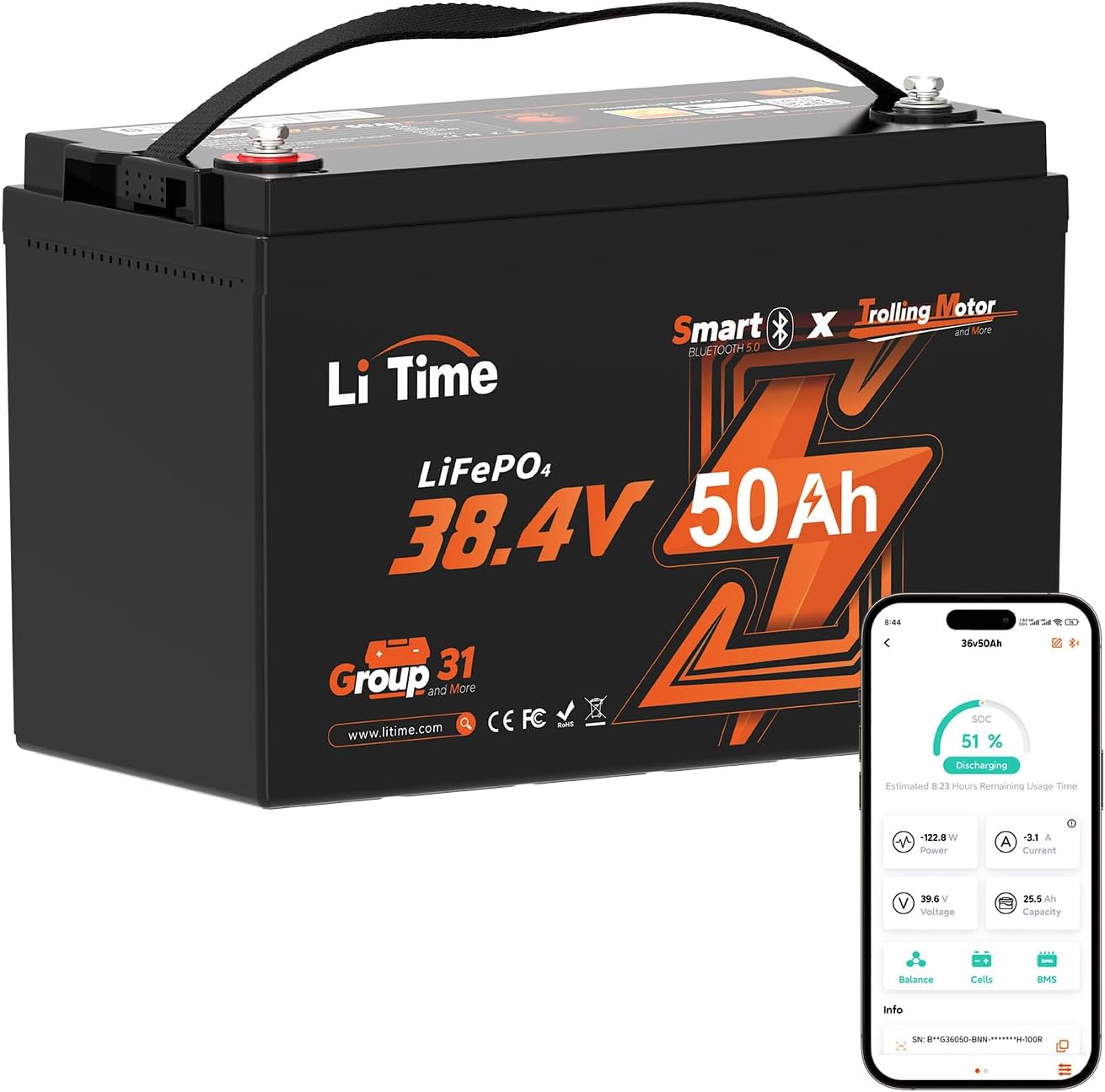 1. Best Overall: LiTime 36V 50Ah Trolling Motor